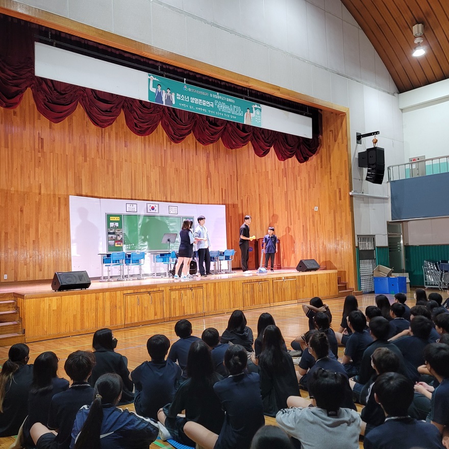 7월 13일(목) 생명나눔실천본부 찾아가는 생명존중교육(문화공연-연극)을 서울 도봉구에 있는 창일중학교에서 진행하였습니다. 통상적인 가해자, 피해자 입장이 아닌 방관자의 입장에서 그려낸 이번 연극을 통해 청소년 아이들이 흔히 겪을 수 있는 '학교폭력'을 주제로 청소년 생명존중에 대해 배워보는 뜻깊은 시간이었습니다. |