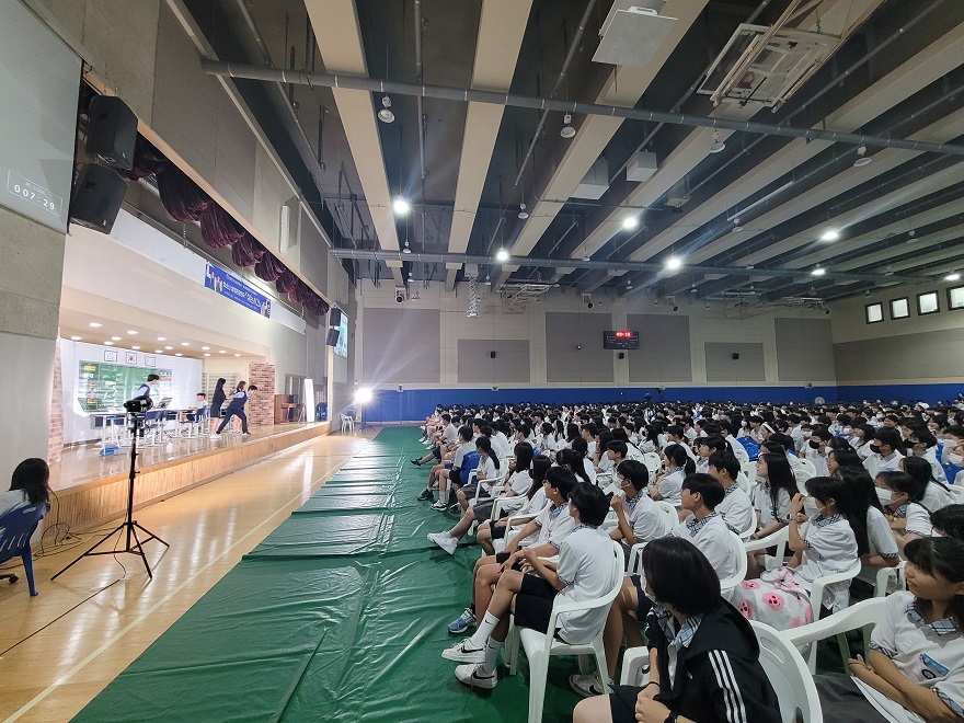 8월 17일(목) 생명나눔실천본부 찾아가는 생명존중교육(문화공연-연극)을 서울 서대문구에 있는 명지중학교에서 진행하였습니다. 학생들이 직접 방관자와 피해자의 역할로 무대에 서보는 참여형 연극으로 연극을 통해 청소년 아이들이 학교에서 흔히 겪을 수 있는 '학교폭력과 따돌림'을 주제로 청소년 생명존중에 대해 배워보는 뜻깊은 시간이었습니다. |