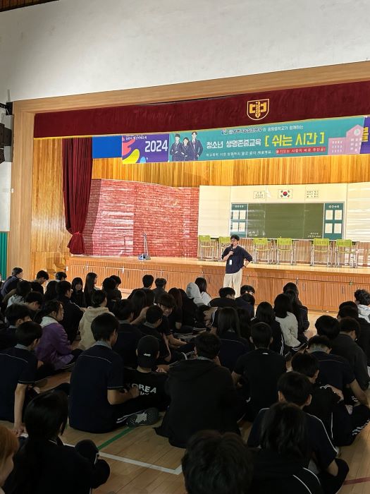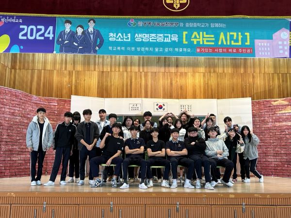 9월 29일(화) 생명나눔실천본부와 행정안전부와 함께하는 찾아가는 생명존중교육(문화공연-연극)을 서울 중랑구에 있는 중랑중학교에서 진행하였습니다. 이번 연극을 통해 청소년들이 겪을 수 있는 '학교폭력'을 주제로 청소년 생명존중에 대해 배워보는 시간이었습니다. 공연 관람 후 배우들과 반별로 단체 사진 촬영도 하며 즐거운 시간을 가졌습니다 |