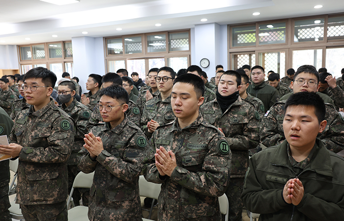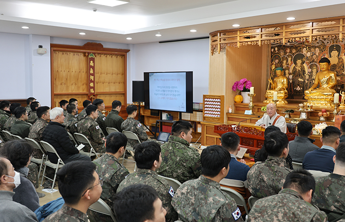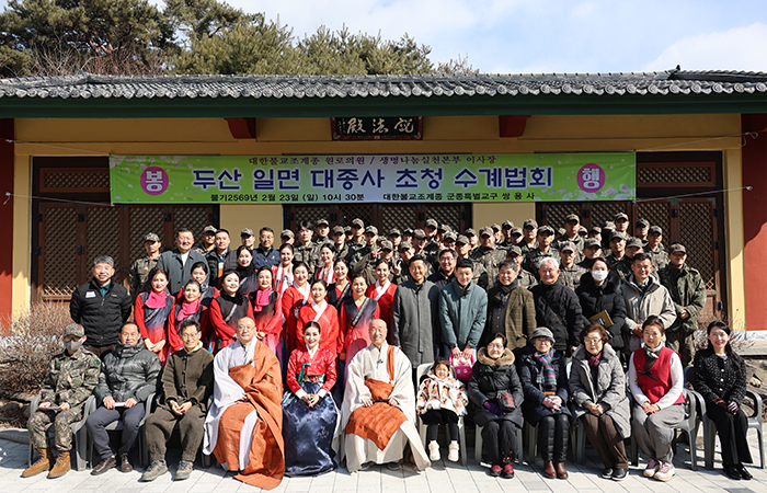 생명나눔실천본부(이사장 일면 대종사)는 2월 23일, 춘천 2군단 사령부내 조계종 군종교구 호국 쌍용사(주지 법사 혜징)를 찾아 대한민국을 수호하는 정예신병이 되기 위해 심신을 단련하고 있는 군 장병 150여 명과 일반 신도 50여 명을 대상으로 수계법회를 봉행했습니다.