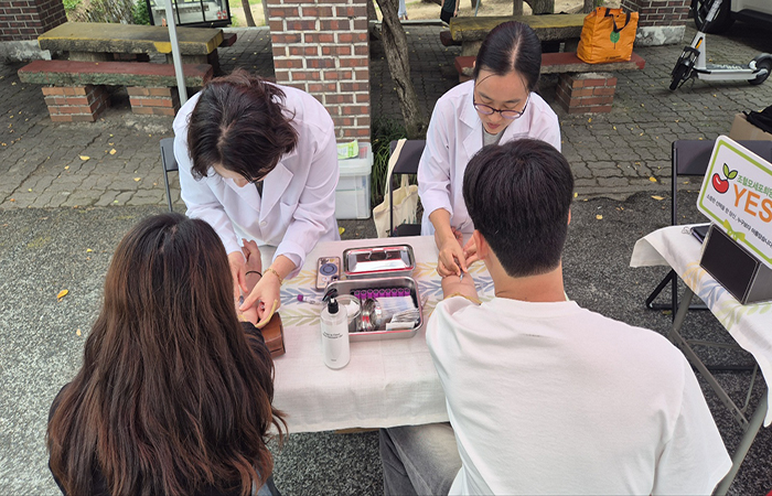 이번 캠페인에서 간호학과 학생들은 사전 교육을 통해 장기·조혈모세포 기증의 의미를 깊이 이해하고, 행사 기간 동안 등록 부스를 찾은 재학생과 교직원들에게 직접 설명하며 참여를 독려했습니다. 그 결과, 100여 명의 대학 구성원이 희망등록에 동참하며 ‘생명을 살리는 약속’에 힘을 보탰습니다.