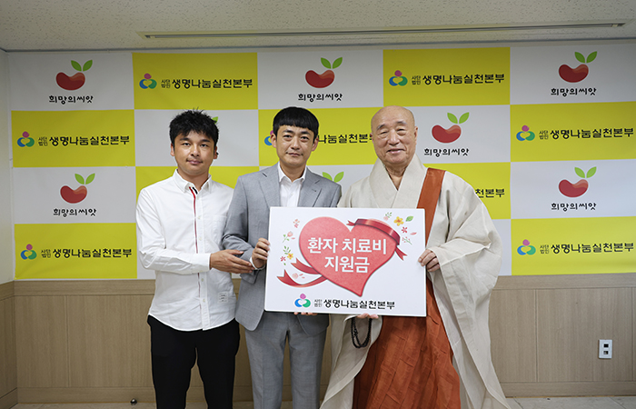 생명나눔실천본부(이사장 일면대종사)는 9월 30일, 본부 회의실에서 서승범 레이서 기념 사업회가 환자치료비 지원금으로 상금 800만 원을 기부했습니다.