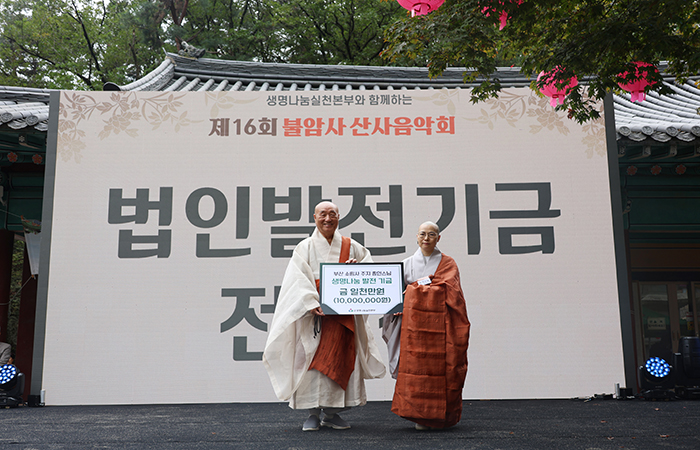 생명나눔실천본부(이사장 일면대종사)는 10월 18일, 남양주 불암사에서 산사에 가을을 담고, 가을에 생명을 담은 ‘생명나눔과 함께하는 제16회 불암사 산사음악회’를 개최했습니다.