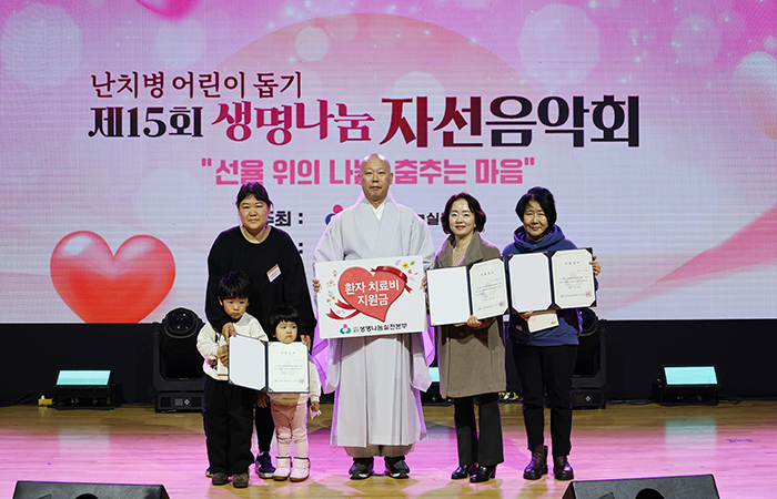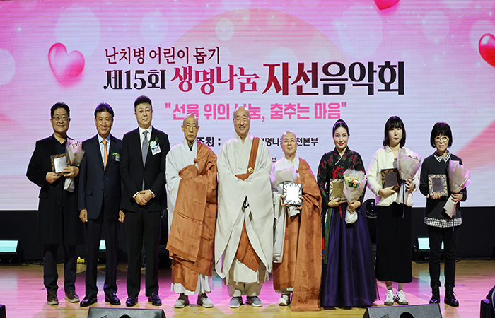 생명나눔실천본부(이사장 일면 대종사)는 11월 22일, 중랑구청 대강당에서 난치병·이식대기자 치료비 모금을 위한 ‘제15회 생명나눔 자선음악회’를 성황리에 개최했습니다. 행사는 먼저 치료비 지원을 통해 병마와 싸우고 있는 어린이들의 영상을 상영하는 것으로 시작되었고, 이어 환자 치료비 지원금 전달식이 진행됐습니다.