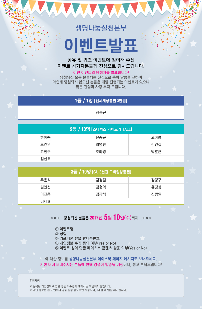 페이스북 3월 이벤트 당첨자 발표